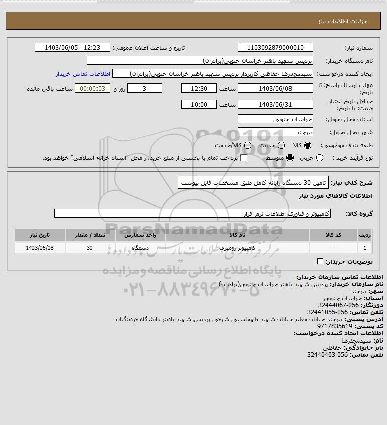 نام دستگاه خریدار:پردیس شهید باهنر خراسان جنوبی(برادران)