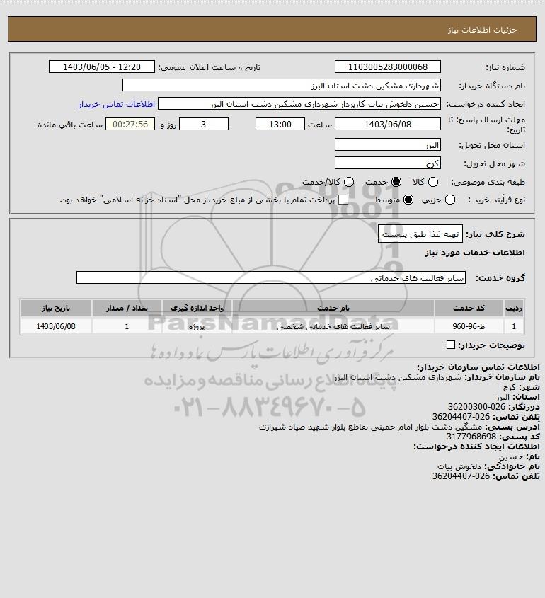 نام دستگاه خریدار:شهرداری مشکین دشت استان البرز