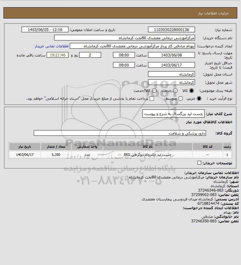 1 -- چست لید الکتروکاردیوگرافی EKG عدد 5,350 1403/06/17