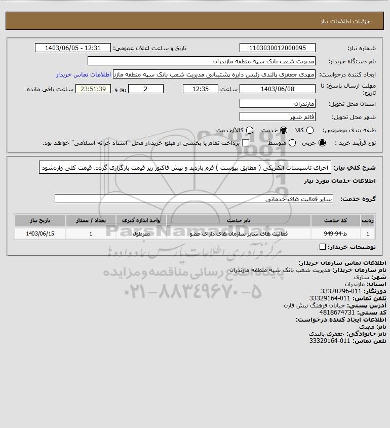 نام دستگاه خریدار:مدیریت شعب بانک سپه منطقه مازندران