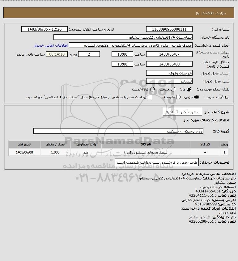 نام دستگاه خریدار:بیمارستان 174تختخوابی 22بهمن نیشابور