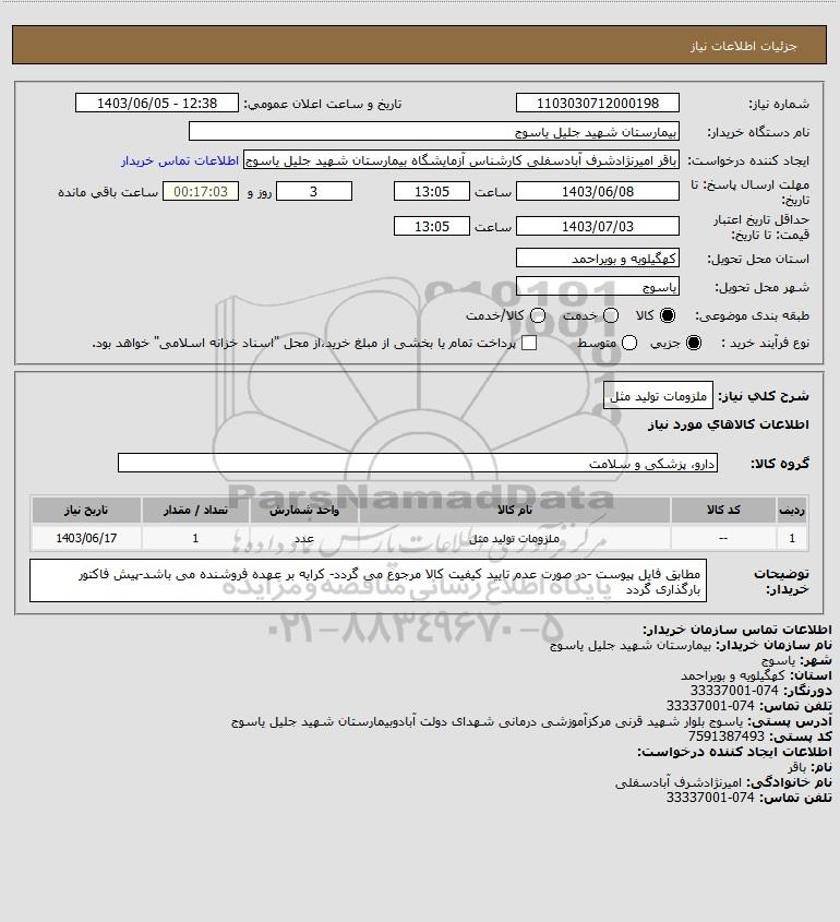 نام دستگاه خریدار:بیمارستان شهید جلیل یاسوج