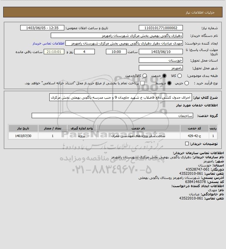 نام دستگاه خریدار:دهیاری پاگچی بهمیی بخش مرکزی شهرستان رامهرمز