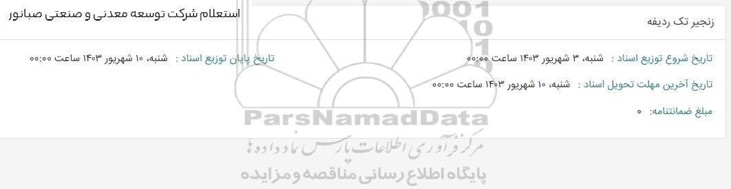 استعلام شرکت توسعه معدنی و صنعتی صبانور
