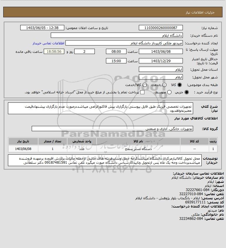 | 1 | -- | دستگاه تستر سطح | عدد | 1 | 1403/06/08 |
