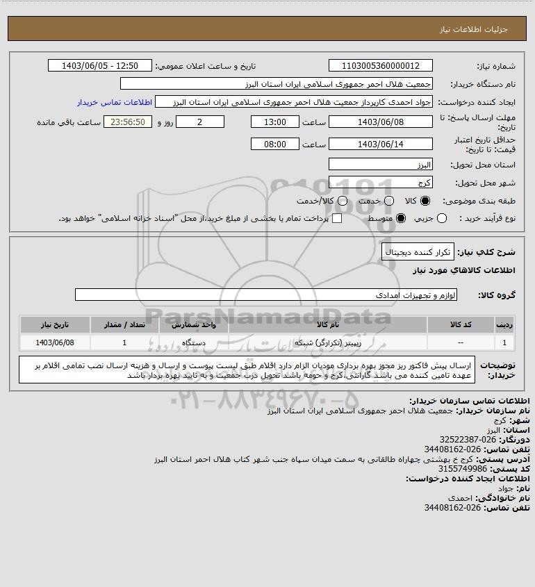نام دستگاه خریدار:جمعیت هلال احمر جمهوری اسلامی ایران استان البرز
