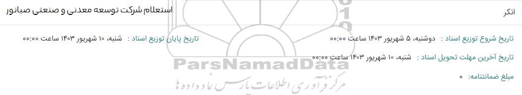 استعلام شرکت توسعه معدنی و صنعتی صبانور