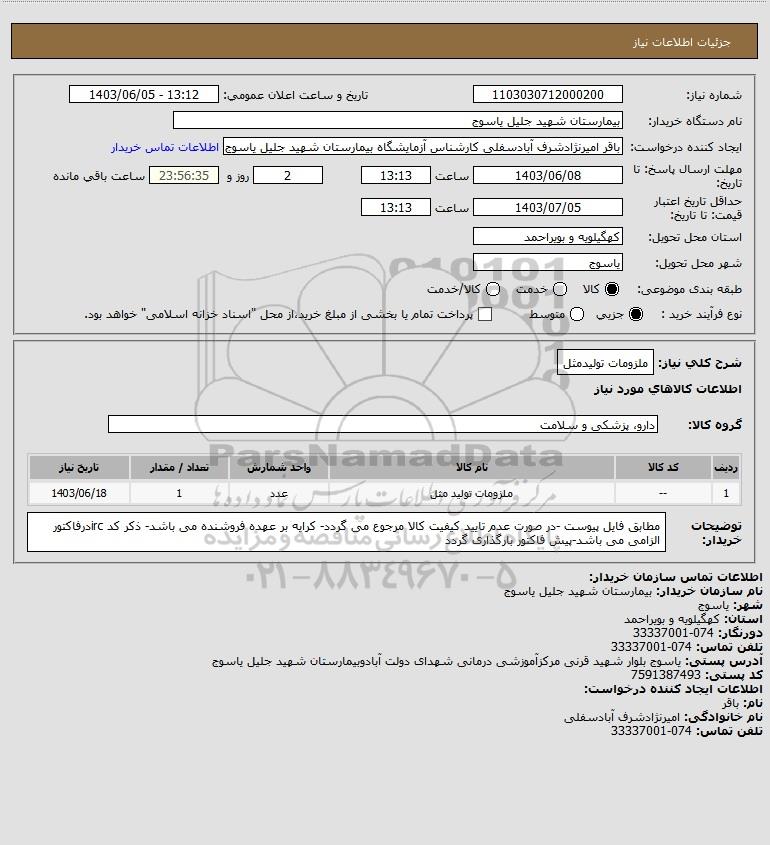 نام دستگاه خریدار:بیمارستان شهید جلیل یاسوج