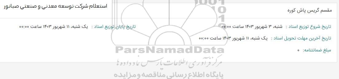 تاریخ آخرین مهلت تحویل اسناد: یکشنبه 11 شهریور 1403 ساعت 00:00