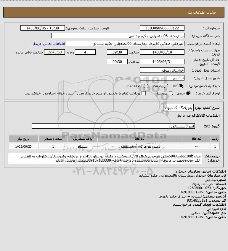 نام دستگاه خریدار:بیمارستان 96تختخوابی حکیم نیشابور