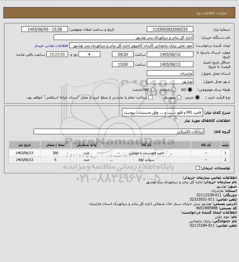 شرح کلی نیاز: لامپ FPL و فلور سنت و ... وفق مستندات پیوست