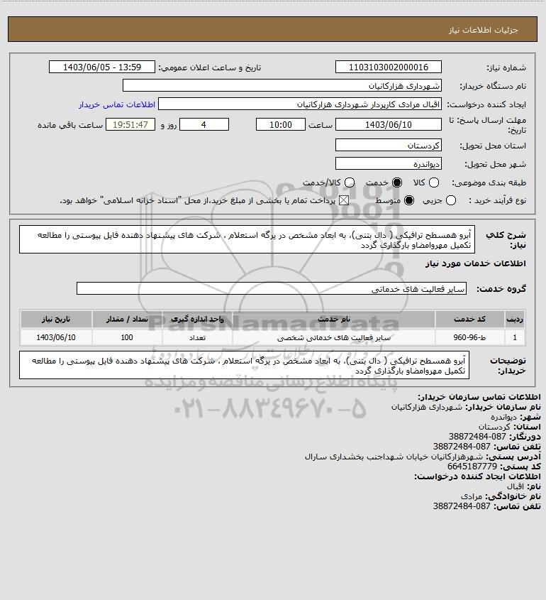 نام دستگاه خریدار:شهرداری هزارکانیان