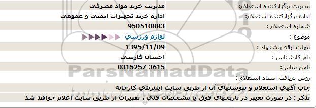 اداره برگزارکننده استعلام: اداره خرید تجهیزات ایمنی و عمومی