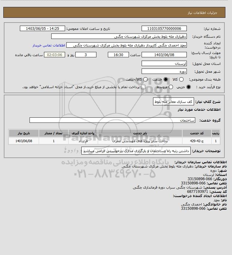 نام دستگاه خریدار:دهیاری مله بلوط بخش مرکزی شهرستان چگنی