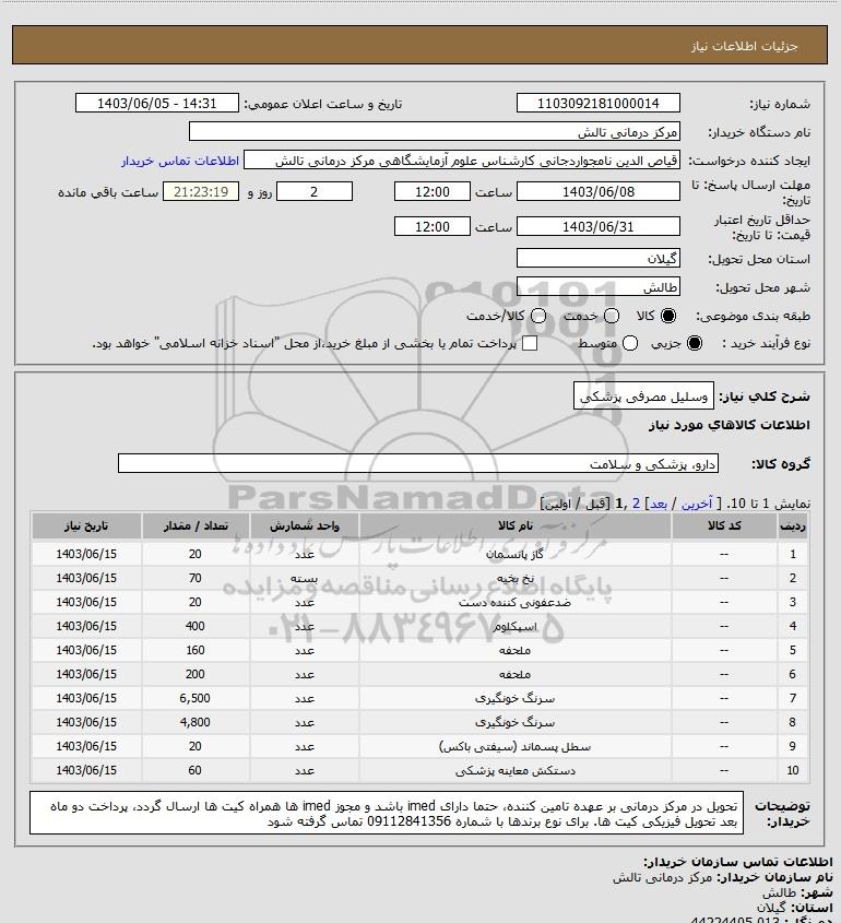 | 8 | -- | سرنگ خونگیری | عدد | 4,800 | 1403/06/15 |