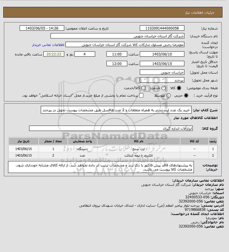 نام دستگاه خریدار:شرکت گاز استان خراسان جنوبی