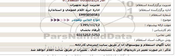 اداره برگزارکننده استعلام:     اداره خرید اقلام عمومی و استاندارد