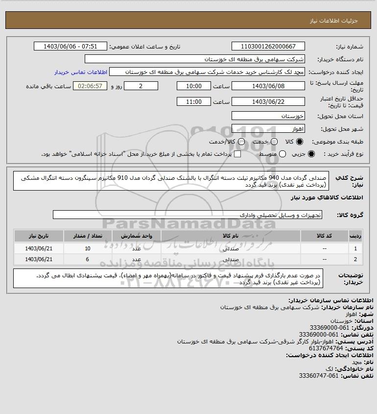 نام سازمان خریدار: شرکت سهامی برق منطقه ای خوزستان