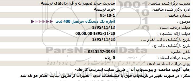 موضوع :      اجاره یک دستگاه جرثقیل 400 تنی