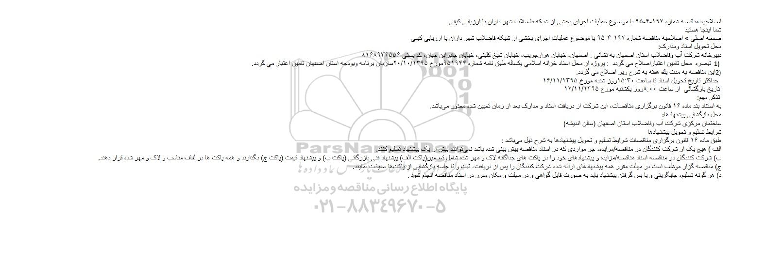 اصلاحیه مناقصه شماره 197-4-95 با موضوع عمليات اجرای بخشی از شبکه فاضلاب شهر داران با ارزیابی کیفی