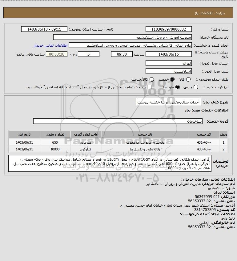 نام دستگاه خریدار:مدیریت اموزش و پرورش اسلامشهر
