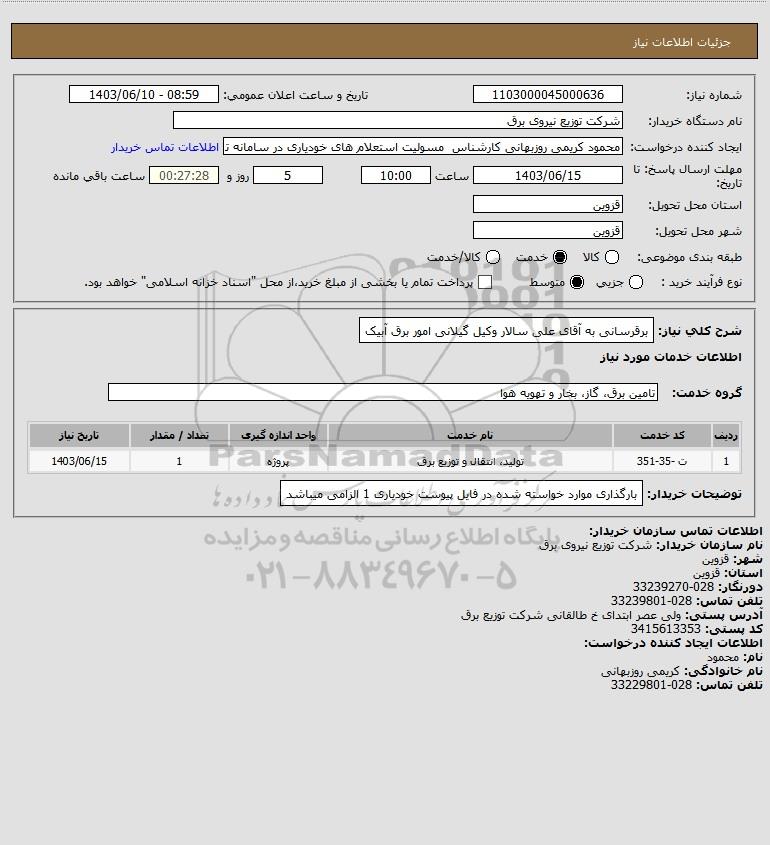 استعلام برقرسانی به آقای علی سالار وکیل گیلانی امور برق آبیک, استعلام برقرسانی به آقای علی سالار وکیل گیلانی امور برق آبیک