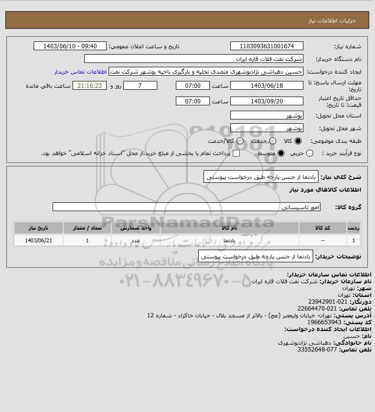 نام دستگاه خریدار:شرکت نفت فلات قاره ایران
