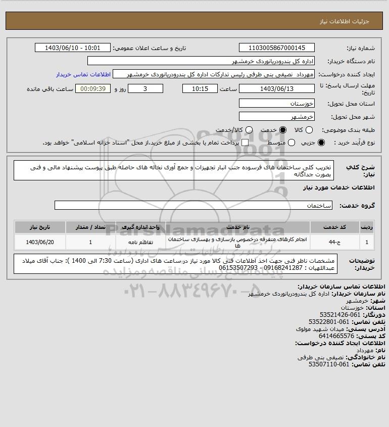 نام دستگاه خریدار:اداره کل بندرودریانوردی خرمشهر