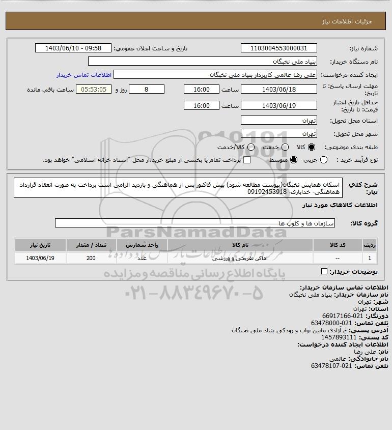نام دستگاه خریدار:بنیاد ملی نخبگان