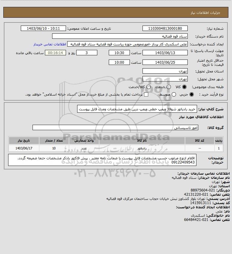 | 1 | -- | رادیاتور | عدد | 10 | 1403/06/17 |