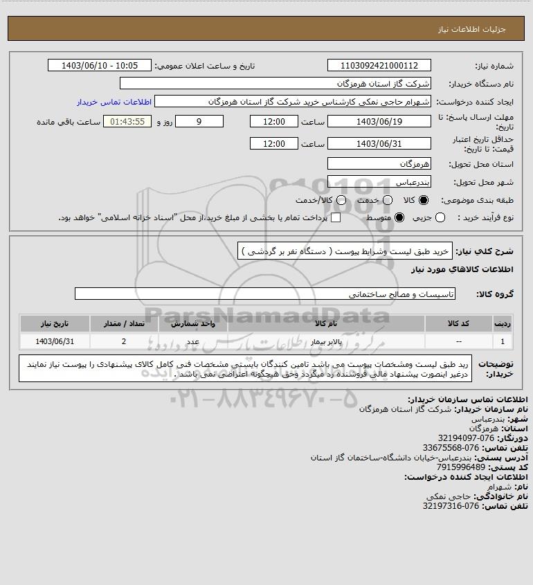 نام دستگاه خریدار:شرکت گاز استان هرمزگان