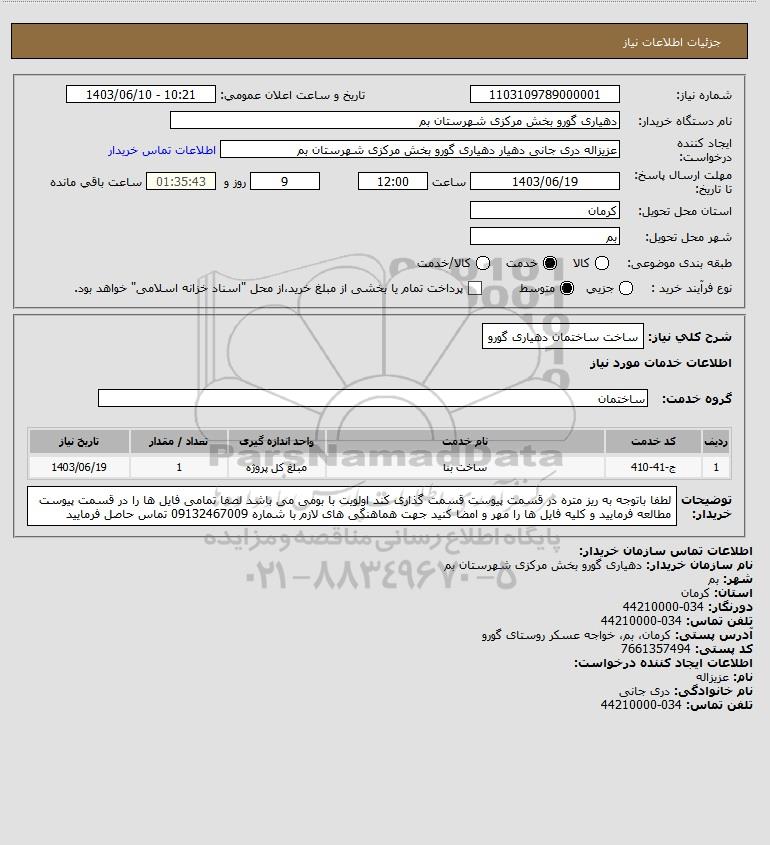 نام دستگاه خریدار:دهیاری گورو بخش مرکزی شهرستان بم