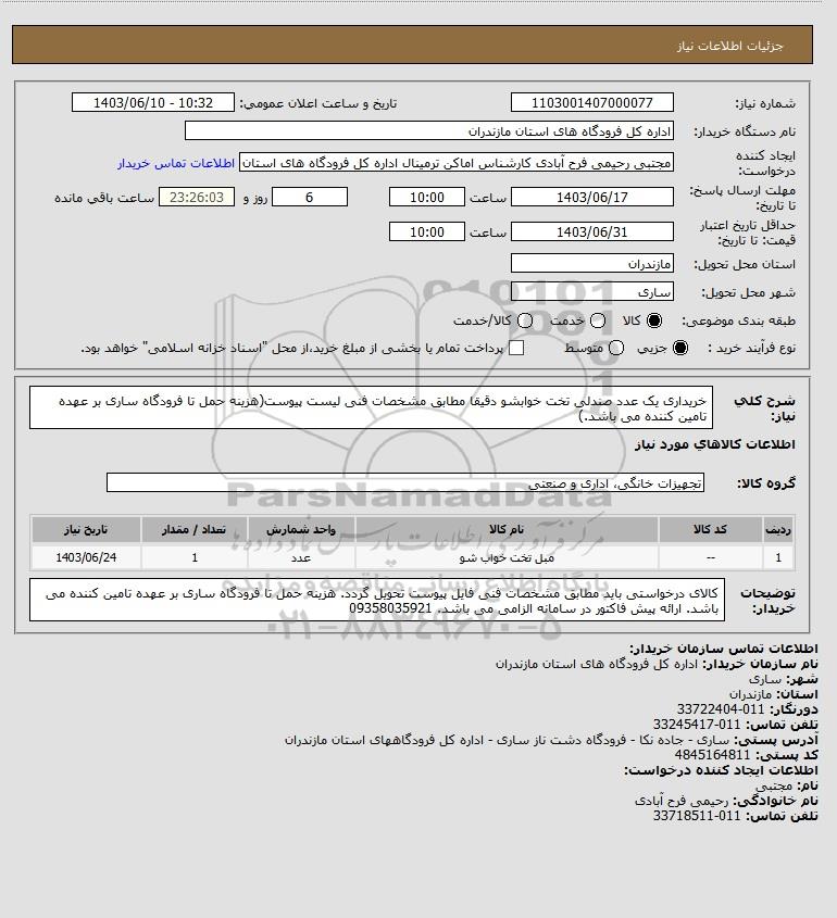 نام دستگاه خریدار:اداره کل فرودگاه های استان مازندران