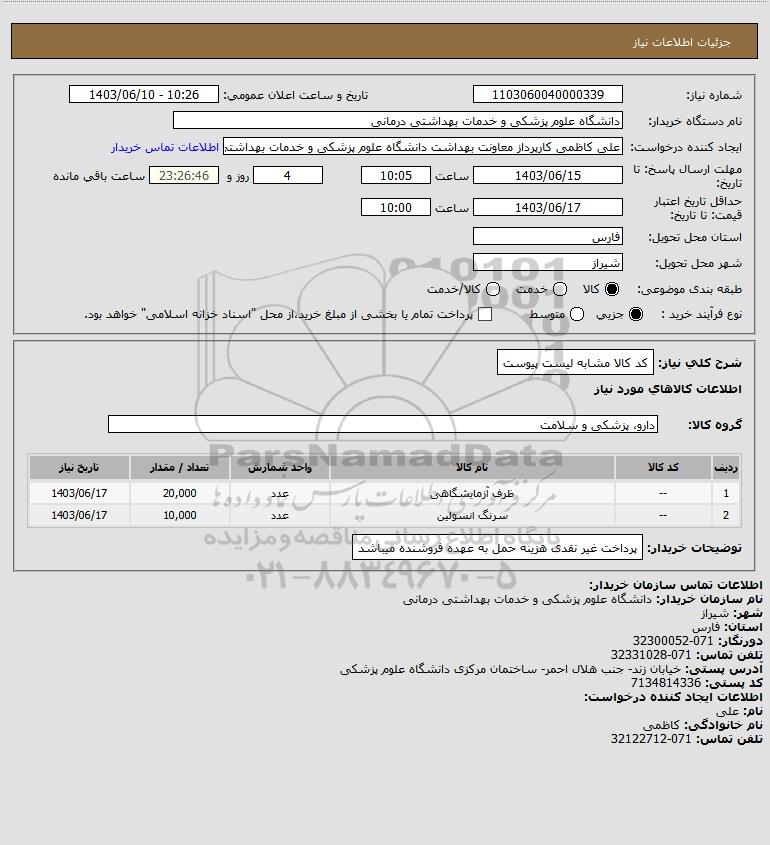 | 2 | -- | سرنگ انسولین | عدد | 10,000 | 1403/06/17 |