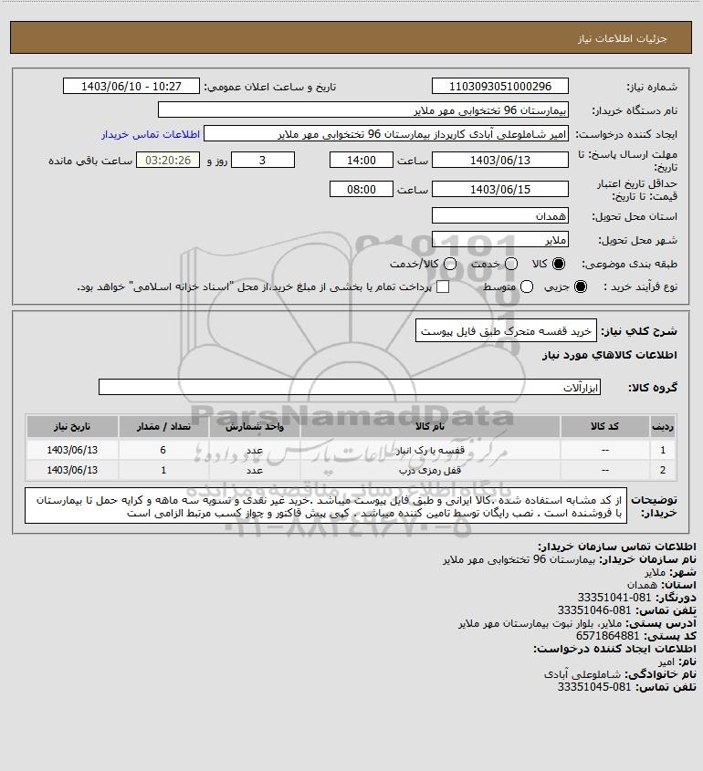 نام دستگاه خریدار:بیمارستان 96 تختخوابی مهر ملایر