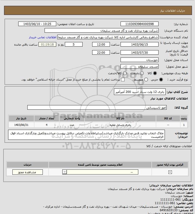 1 -- باتری وسایل نقلیه عدد 4 1403/06/31