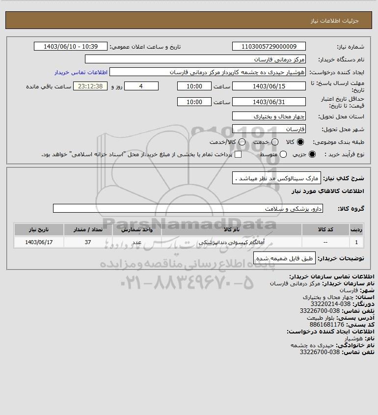 نام دستگاه خریدار:مرکز درمانی فارسان