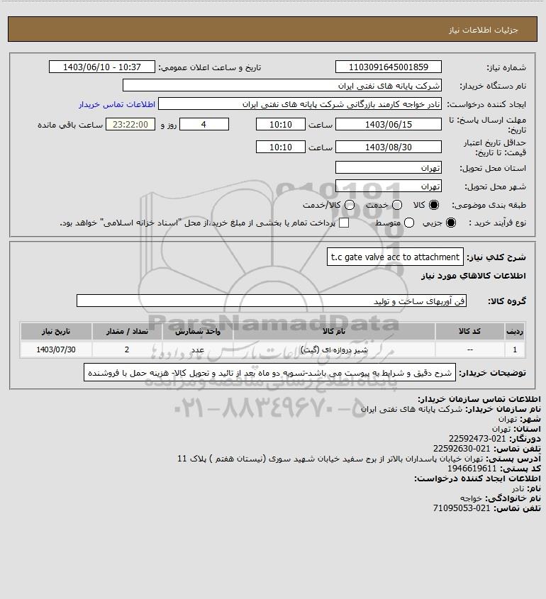 شرح کلی نیاز: t.c gate valve acc to attachment