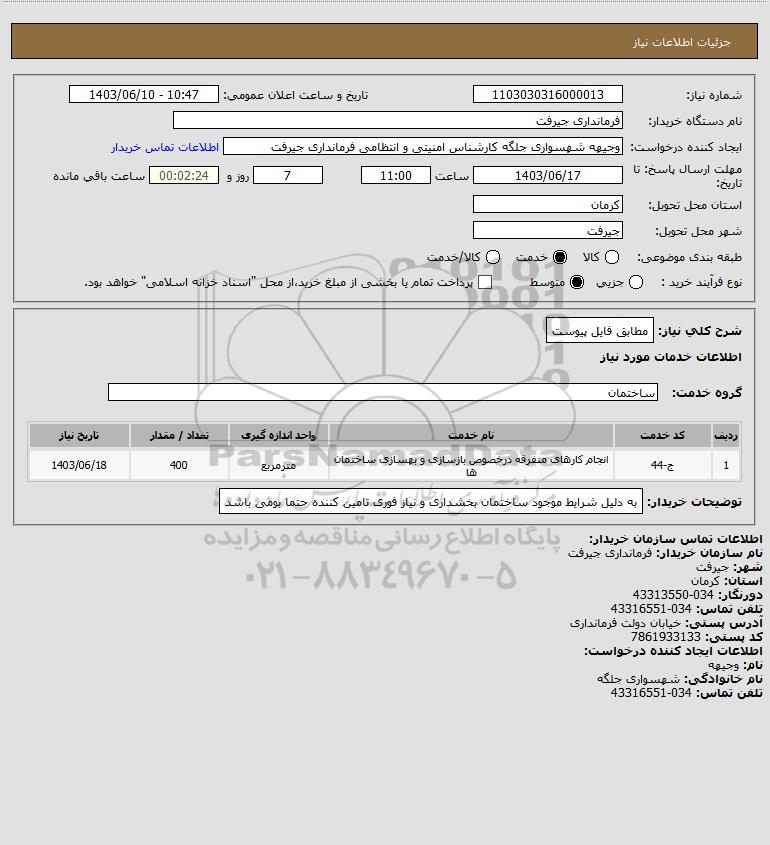 نام دستگاه خریدار:فرمانداری جیرفت