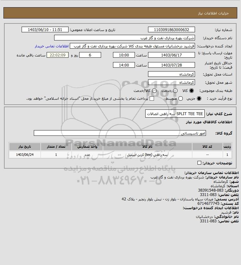 استعلام SPLIT TEE TEE سه راهی اتصالات, استعلام SPLIT TEE TEE سه راهی اتصالات