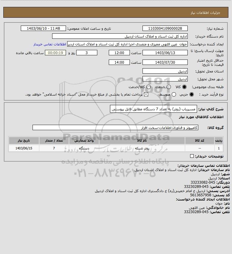 نام دستگاه خریدار:اداره کل ثبت اسناد و املاک استان اردبیل