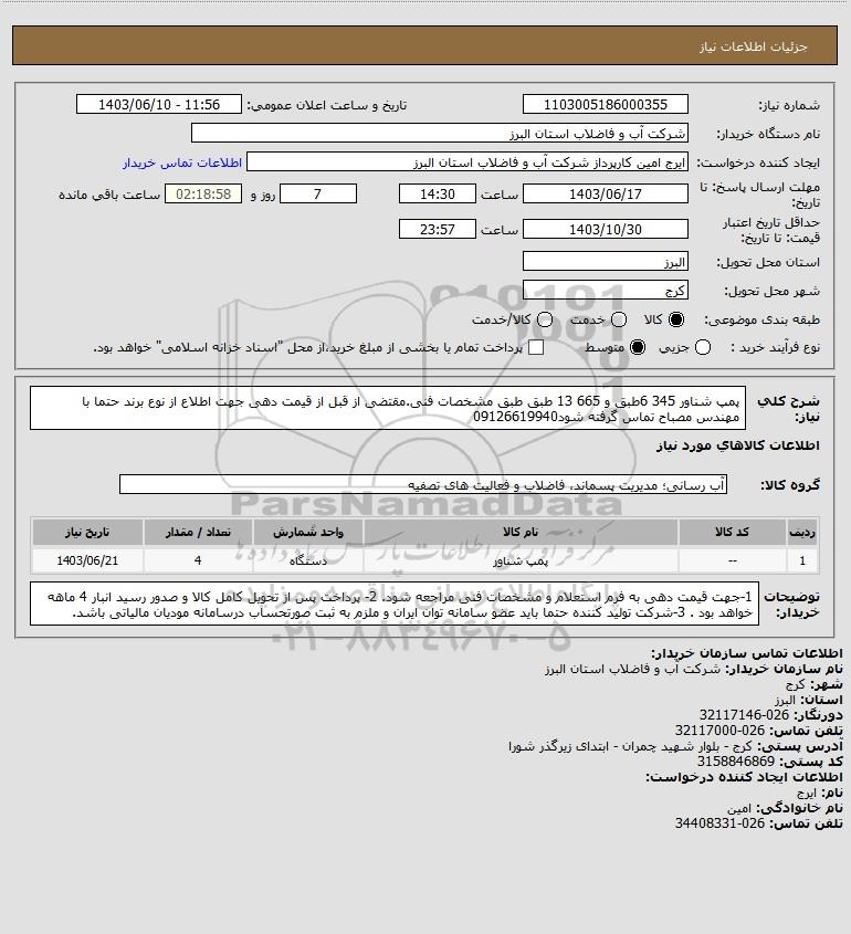 استعلام پمپ شناور 345 6طبق و 665 13 طبق طبق مشخصات فنی.مقتضی از قبل از قیمت دهی جهت اطلاع از نوع برند حتما با مهندس مصباح تماس گرفته شود09126619940, استعلام پمپ شناور 345 6طبق و 665 13 طبق طبق مشخصات فنی.مقتضی از قبل از قیمت دهی جهت اطلاع از نوع برند حتما با مهندس مصباح تماس گرفته شود09126619940