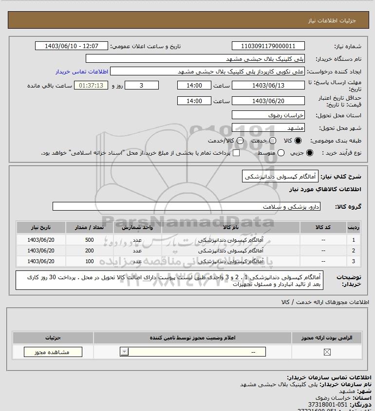 | 3 | -- | آمالگام کپسولی دندانپزشکی | عدد | 100 | 1403/06/20 |