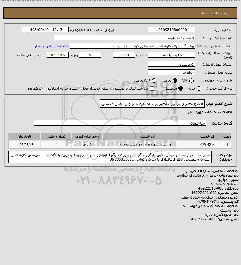 شرح کلی نیاز: اصلاح معابر و بتن ریزی معابر روستای مره تا از توابع بخش کلاشی
