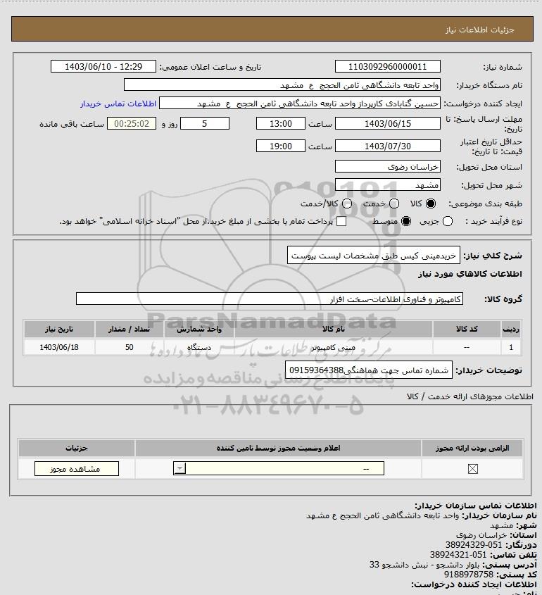 نام دستگاه خریدار:واحد تابعه دانشگاهی ثامن الحجج ع مشهد