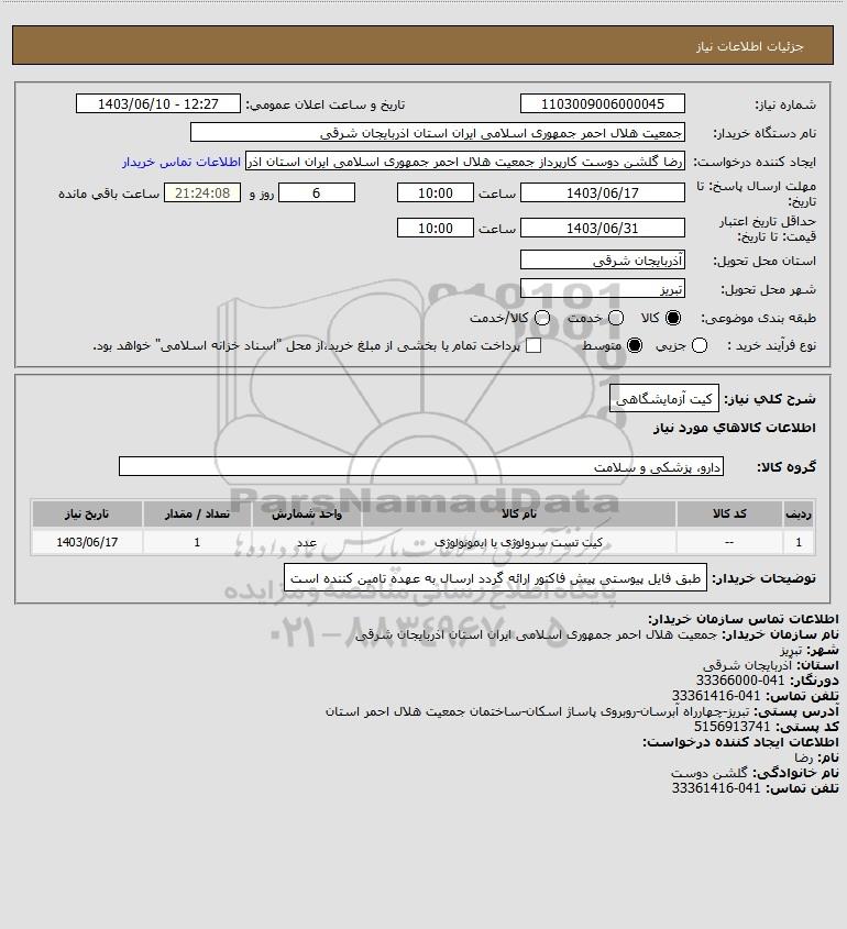 نام دستگاه خریدار:جمعیت هلال احمر جمهوری اسلامی ایران استان اذربایجان شرقی