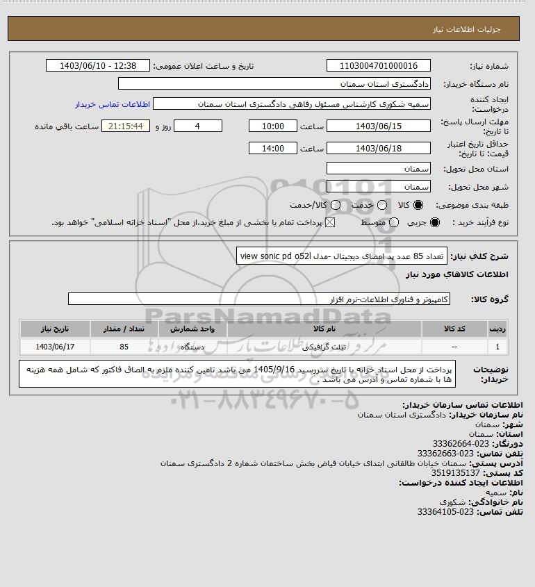 شرح کلی نیاز: تعداد 85 عدد پد امضای دیجیتال -مدل view sonic pd o52l