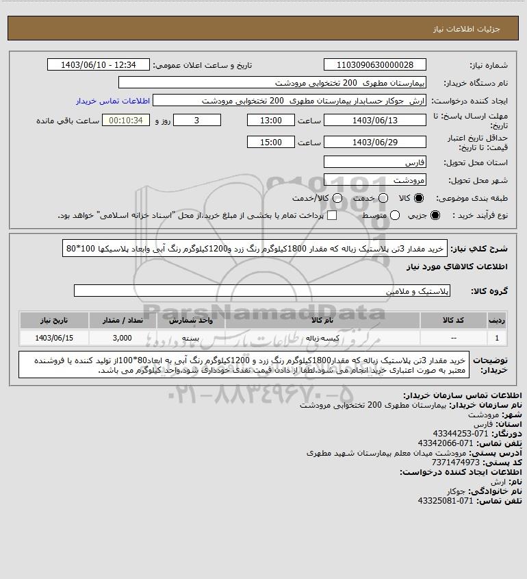 نام دستگاه خریدار:بیمارستان مطهری 200 تختخوابی مرودشت