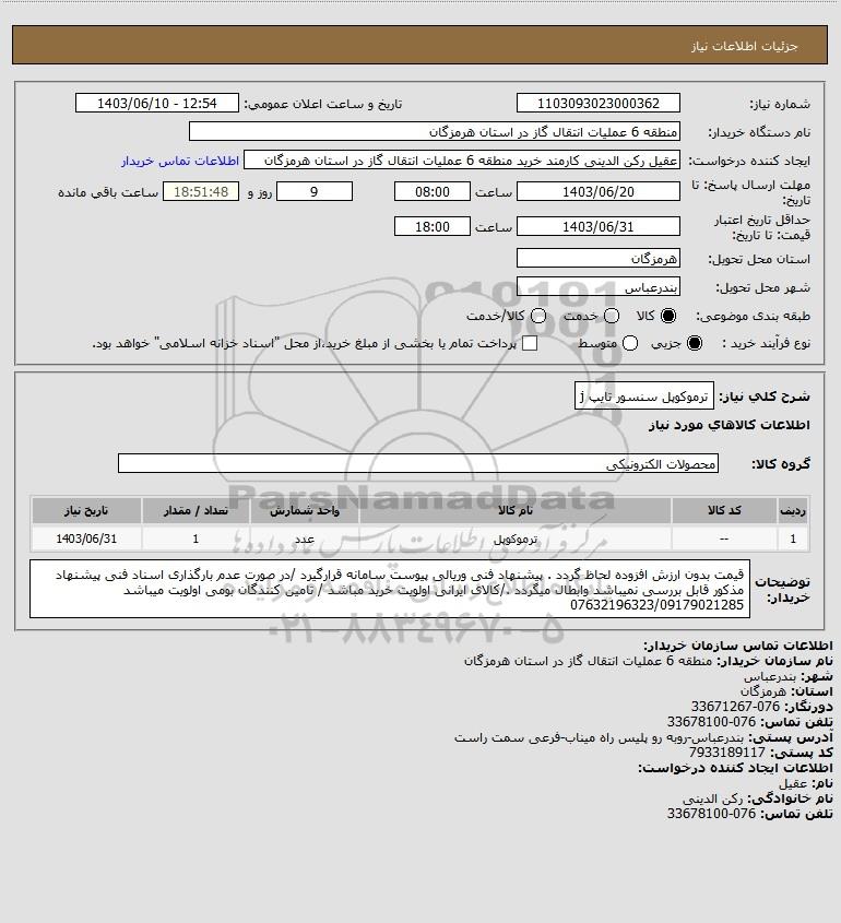 | 1 | -- | ترموکوپل | عدد | 1 | 1403/06/31 |