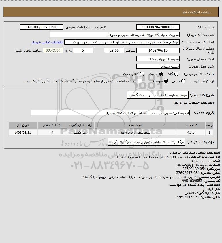 شرح کلی نیاز: مرمت و بازسازی قنات شهرستان گلشن